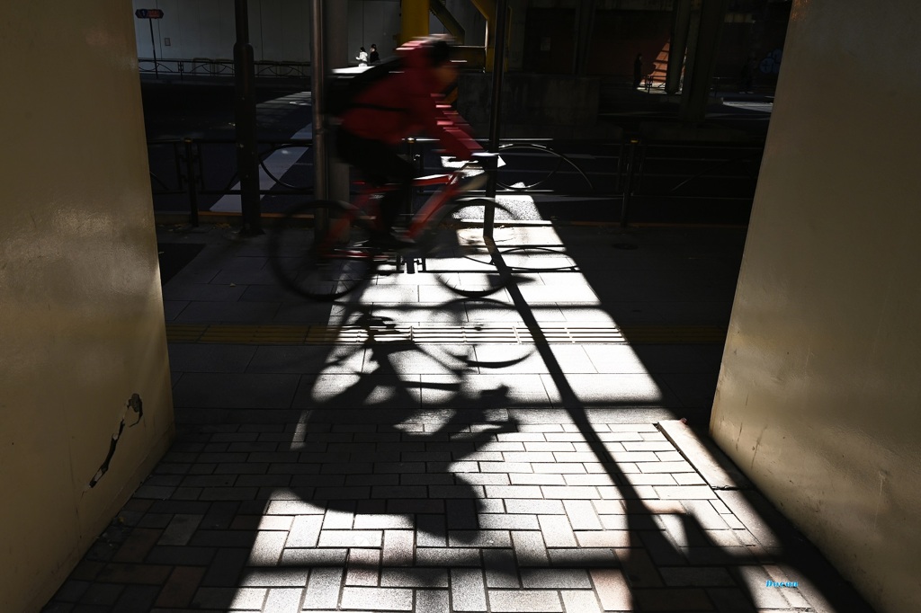 pyhä さま 。+゚:.おはようございます.:゚+ 冬の硬質そうなヒカリがガード下に注ぎ 切り取られたヒカリの中を自転車が通過したので・・・ ほんの少しのスローシャッターでパチリ!しました(*^ε^*)ー♪ 赤い自転車の流れる影が気忙しい12月を象徴してくれたみたいで・・ 良かったです(~・0・~)ノ ちなみにこの日は大安吉日で この後有楽町へ行き年末ジャンボ買っちゃいました・・・(*゚・゚) ありがとうございます(^^♪