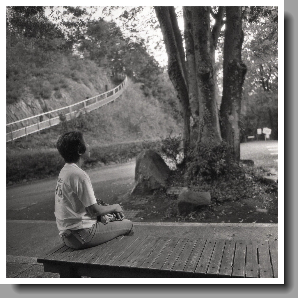 二眼レフをぶら下げていたら地球村の作業員の方から 「珍しいカメラですねぇ!」と声を掛けられ 調子に乗って私が解説しながらファインダーなどを見せると 私より年長の方お二人でした。 そんな様子を見て家内は 「カメラの話して良かったね」と少し呆れ顔でベンチで待ってました。(苦笑 MAMIYA C220/MAMIYA SEKOR55mmf4.5 Foma Ortho400/Rodinal100倍希釈60分静止現像 ※現像開始及び20分ごと3度撹拌及び泡除去振動作業