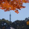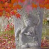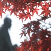 秀吉像と赤モミジ
