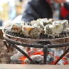 サザエを囲炉裏で焼く