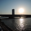 朝、朝日、風景、川、橋、新潟県
